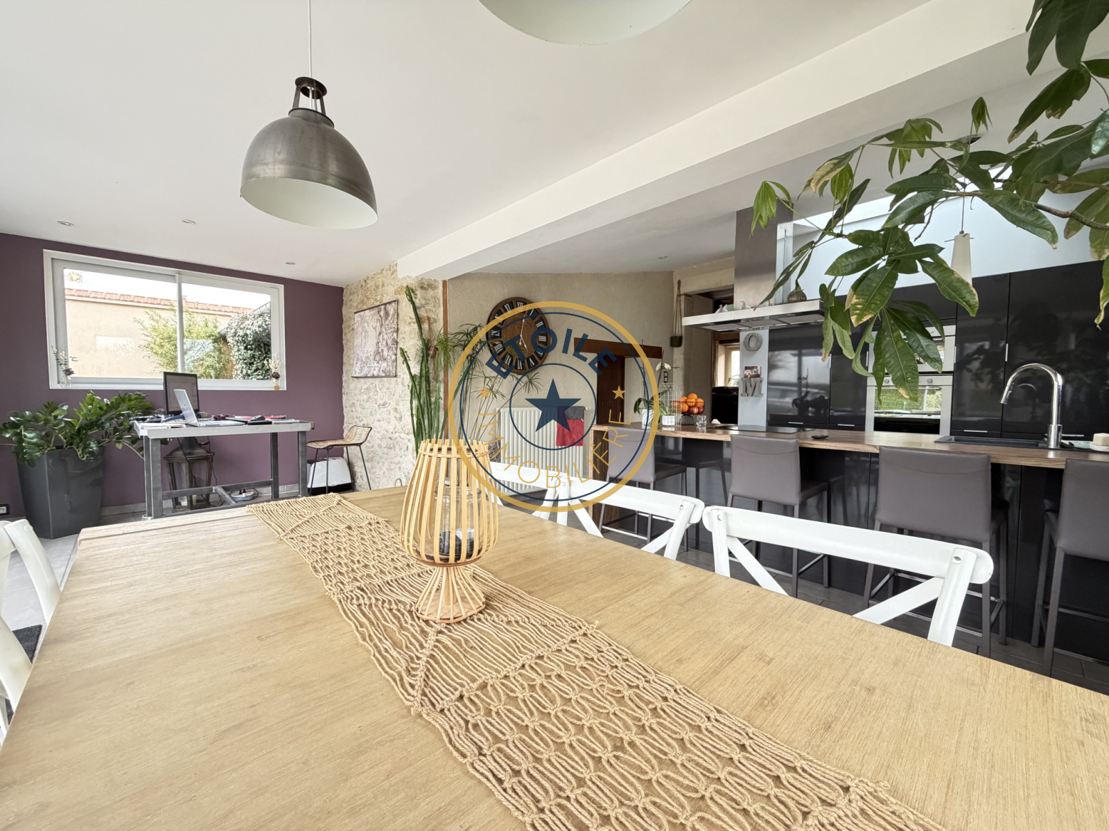 Au rez-de-chaussée vous découvrirez, un large salon séjour de 49m² chaleureux et lumineux, une cuisine aménagée et équipée lumineuse ouverte sur une salle à manger d'environ 35m², une arrière cuisine/buanderie de 7m², un dégagement avec WC et une pièce pouvant faire office d'entrée ou de bureau (possibilité d'indépendance).
